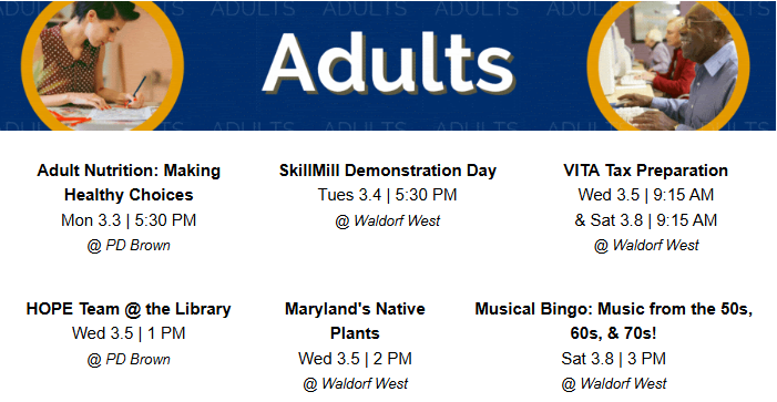 The Charles County Chapter of the Maryland Writers Association assists new and established writers from the basics of the craft, editing, traditional and self-publication, marketing and many other aspects of writing. The Chapter coordinates book signings at various events throughout the year, and coordinated writing events to the Mattawoman Creek Art Center. The Chapter meets at Christ Church, 112 Charles Street, La Plata at 6 PM every third Wednesday of the month for a Critique Group, followed by a business meeting and writing prompts at 7 PM.