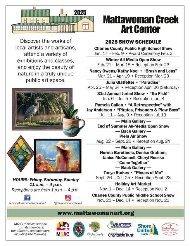 The mission of the Charles County Arts Alliance (CCAA) is to stimulate, promote, encourage, and provide recognition of the arts and the creative spirit. Founded in 1987, the CCAA promotes ALL the arts in Charles County: music, visual art, drama, dance and literature.