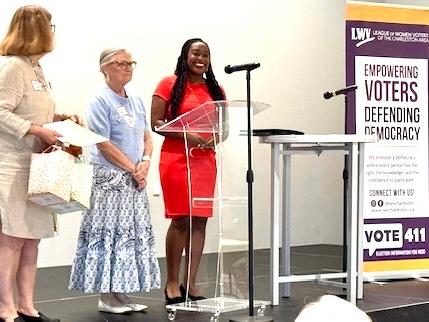 Highlights included a dynamic video of League of Women Voters US President Dianna Wynn on the importance of ensuring a democratic society. National League board member Dr. Kimberly Hamlin reflected on defending democracy in times of crisis, and Dr. Courtney Tollison of Furman University provided a historic perspective of women's suffrage in South Carolina. The presentations were informative and inspirational.