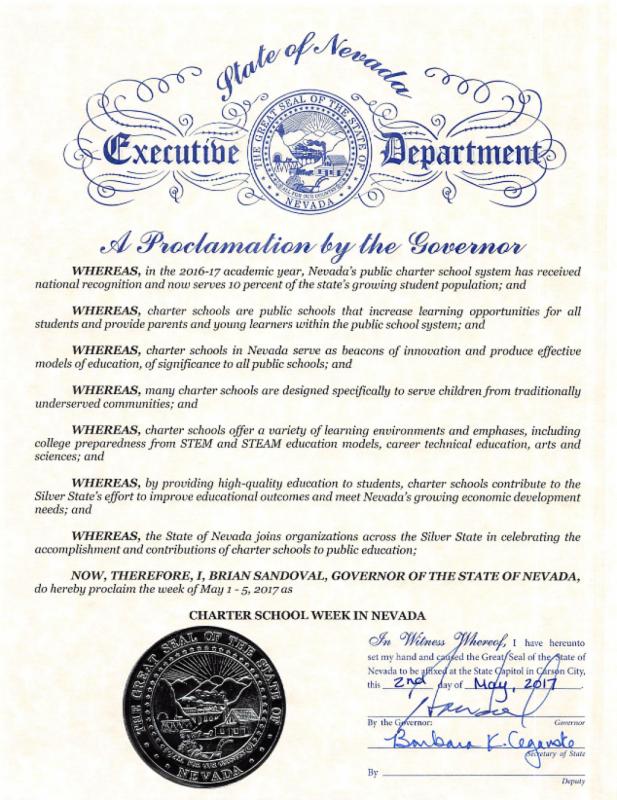 Hunter wanted to thank Oasis Academy staff Rochelle A. Tisdale and Jennifer Mortensen for helping him obtain this position. Hunter is an outstanding example of what a Nevada charter school student can and should be, and we at the Charter School Association of Nevada know he will serve Nevada students well.