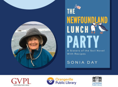 Come out to Coffee, Conversation & Books on Wednesday, April 16, 7 p.m. at the Grand Valley Public Library. Sonia Day will discuss her new book "The Newfoundland Lunch Party: A Sisters of the Soil Novel With Recipes". No registration is required.