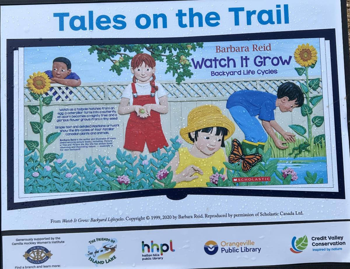 Tales on the Trails at Island Lake CVC features Barbara Reid's book "Watch It Grow: Backyard Life Cycles" until the end of May.