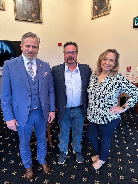 IMRF Board Members Natalie Copper and Jason Isaac meeting with Sen. Rob Martwick (pictured on the left), Chairperson of the Senate Pensions Committee, and Rep. Stephanie Kifowit (photographed on the right), Chairperson of the House Appropriations Committee for Pensions & Personnel.