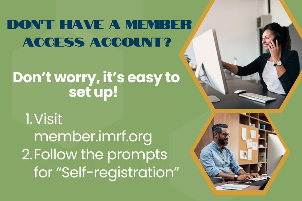 All IMRF members need to create new Member Access accounts in our system, which was updated in March 2024. You will need to self-register for an account in this new Member Access system, even if you had an account in the old system. Your old User ID and password will not work to sign in to the new Member Access.