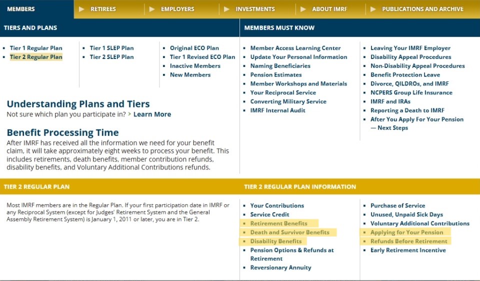 Helpful Hint: You can find benefit information based on your pension tier by clicking on members, your tier, and selecting the topic you are interested in!