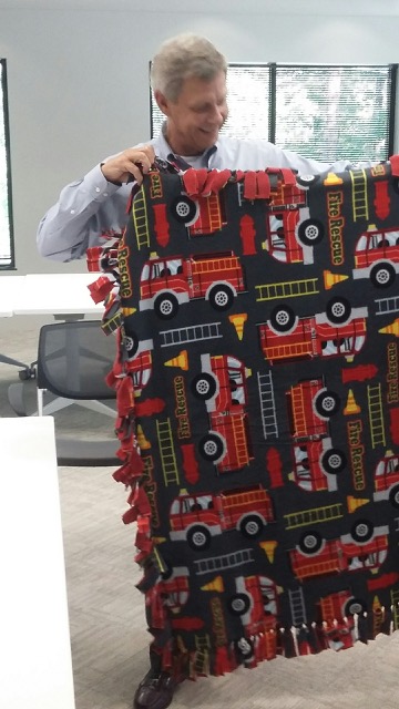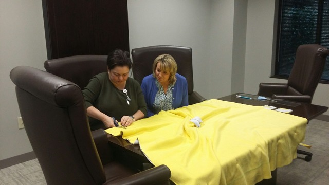 Having fun creating handmade blankets at Oakworth Capital Bank!