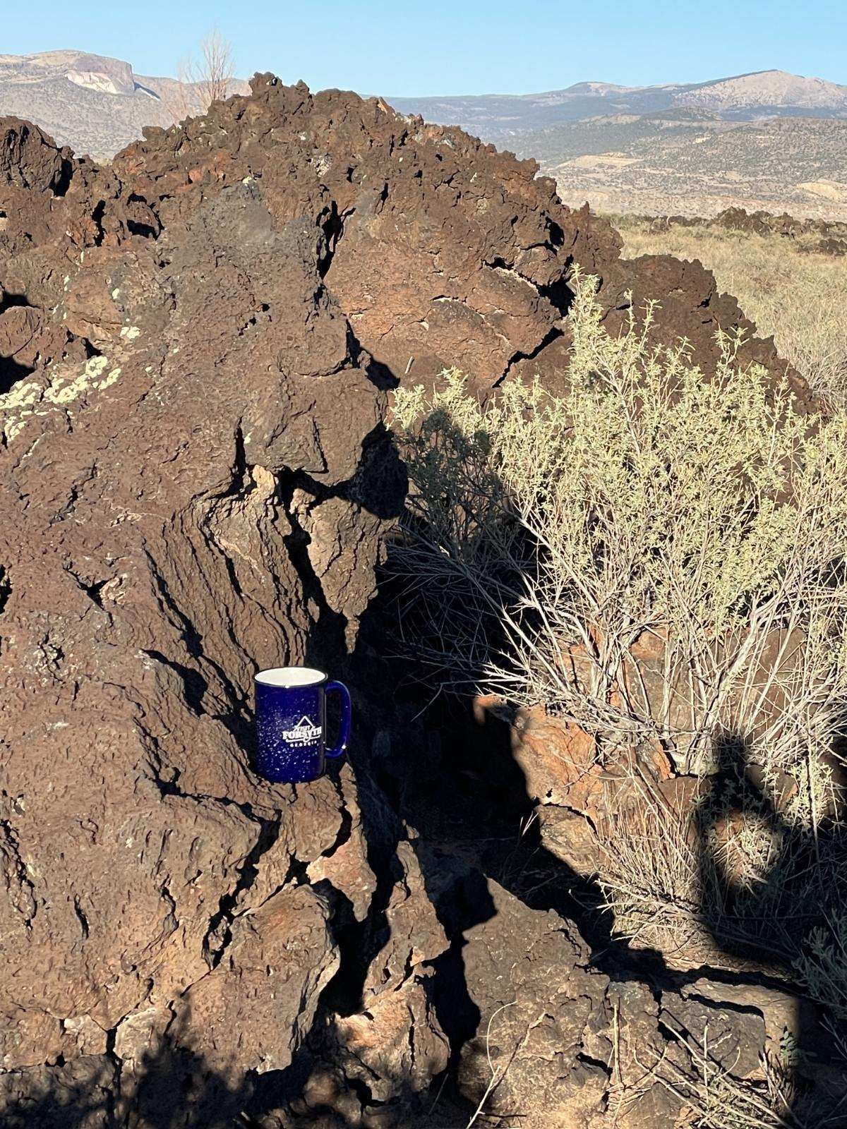 "The Friendship of the Traveling Cup" has reached the giant lava field of Grants, New Mexico. Java and lava. Quite crazy.