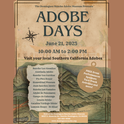 Dominguez Rancho Adobe Museum is hosting its Second Annual Adobe Days event on June 21st from 10 am – 2 pm. Learn about our local adobes and engage with the community all in one spot! Stop by and say hi to the Rancho Los Alamitos’ outreach table and our volunteers. There will be hands-on activities, demonstrations, performances, and food and drink for purchase!