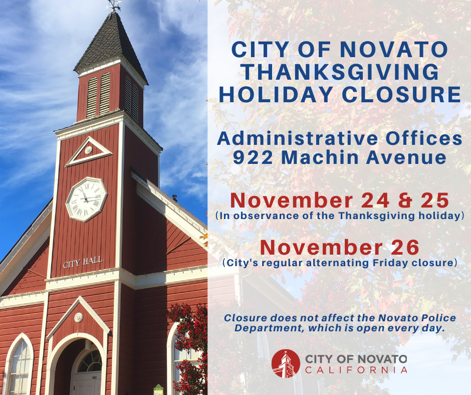 Welcome to the City of Novato monthly newsletter. This issue includes information about the appointment of a new Councilmember to fill the vacant District 5 Council seat; a redesign of our novato.org website; a redistricting meeting on November 9; registration now open for NovatoFUN holiday events; volunteer opportunities with the Novato Streetscape Committee; COVID-19 updates; and more!
