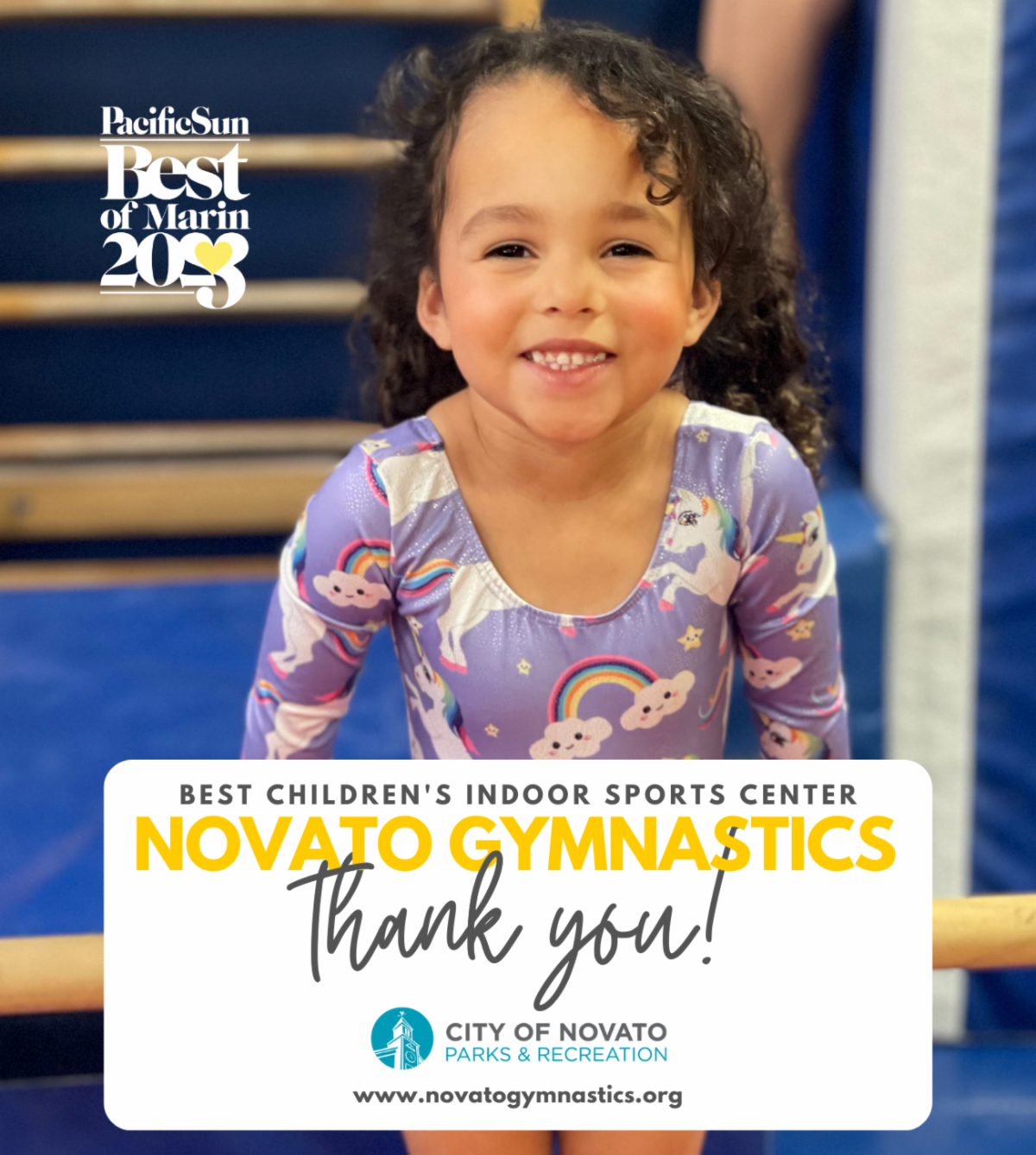 Thank you for voting the Novato Gymnastics Center as the BEST Children's Indoor Sports Center in Marin County and Dogbone Meadow as the BEST Dog Park in Marin County!