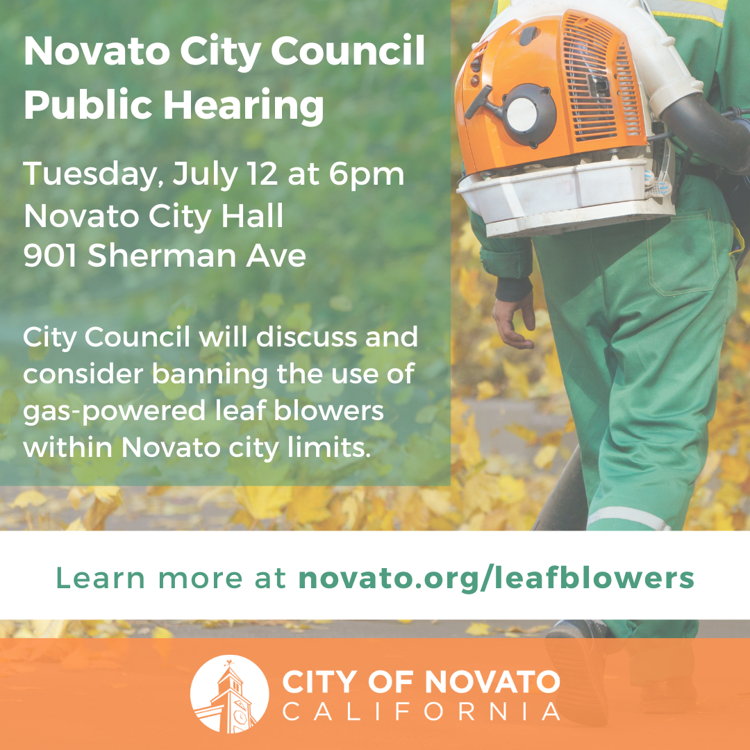 At their July 12, 2022 meeting, Novato City Council will hold a public hearing to consider a ban on the use of gas-powered leaf blowers within Novato city limits.