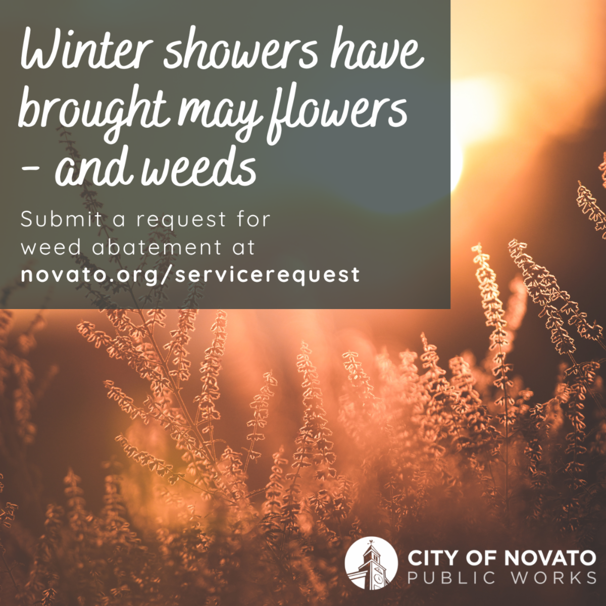 Residents with specific requests for weed abatement (or other City maintenance issues) may submit a service request at novato.org/servicerequest. This is the fastest, most efficient way to direct requests to appropriate staff to respond.