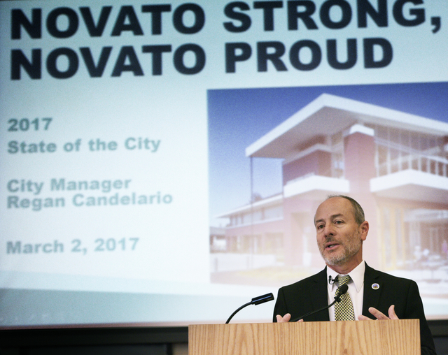 On March 2, City Manager Regan Candelario gave his first State of the City speech for Novato. Highlights of the presentation included City accomplishments from the past year, goals for this year and beyond, and calls to action including #volunteernovato and commitments to the community to bring City Hall discussions and topics to Novato neighborhoods and ever-improving customer service. Both the speech and video of the State of the City, can be found on the