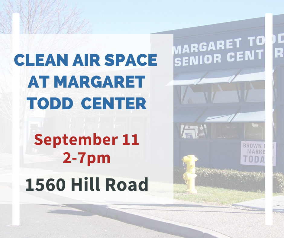 A Clean Air Space location is open today, 9/11, from 2-7pm at the Margaret Todd Center located at 1560 Hill Road in Novato.