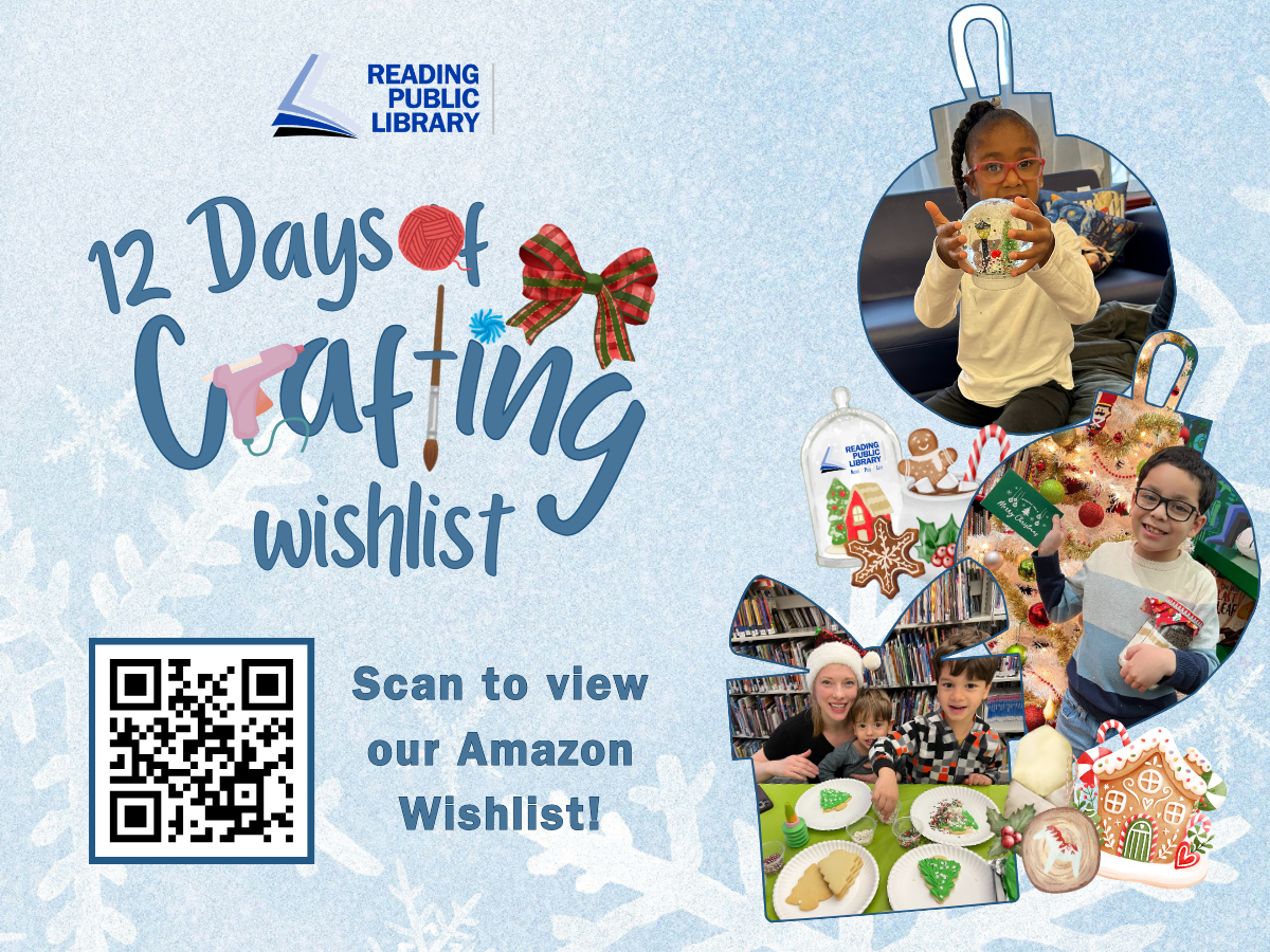 Our popular 12 Days of Crafting program begins December 1st at RPL Main! Together, we will make gingerbread houses, ornaments, cookies, spa gifts, and more - All for free to gift to loved ones this holiday season! Learn more about 12 Days of Crafting here.