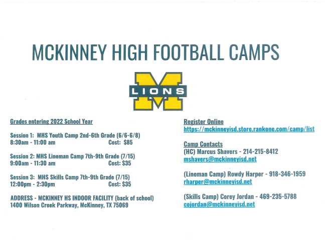 If you have any questions about next year and registration, please call Kori Godfrefy at (469) 302-4700 or email kgodfrey@mckinneyisd.net