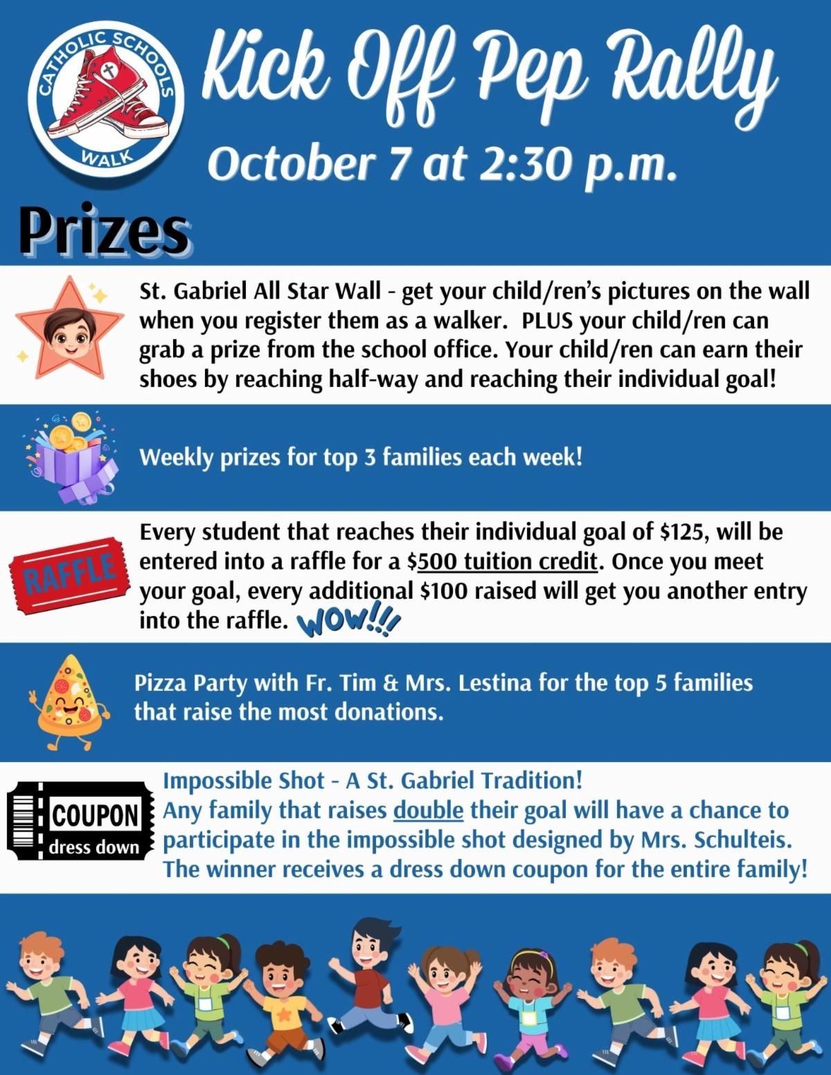 10/7 - Pep Rally at 2:30 p.m. to kick off Catholic School Walk FUNdraiser
