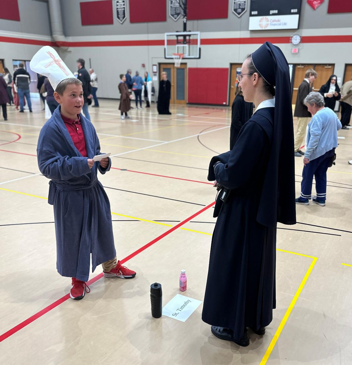 In English and Religion class, they reflected on our 2024/25 school theme “Faith Can Move Mountains” and how we all are called to our own path of sainthood. Through research, each student chose a saint, wrote an essay, and presented it to family, parish members, peers, and teachers at the annual Middle School Saint Museum. The students learned about their saint's unique journeys and how we can all strive to embody virtues like kindness, humility, and service.