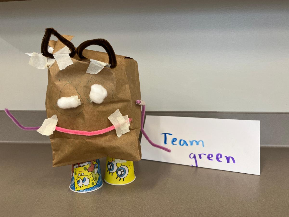The teams were tasked with 1) coming up with a Team Name; 2) Designing, building, and naming a Team Mascot given a limited amount of materials to work with; and 3) presenting their mascot and team name to the rest of the group.