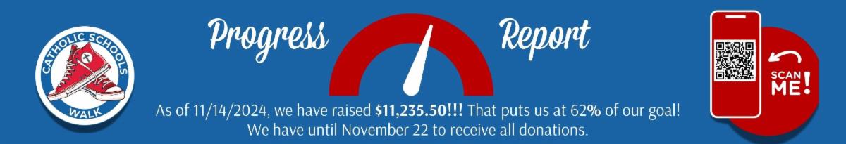 Final call to support our Catholic Schools Walk! We’re just 38% away from reaching our $18,000 goal, and we need your help to get there. Donations are accepted until Friday, November 22. Every contribution makes a difference—thank you for your generous support! | | |