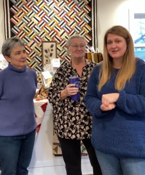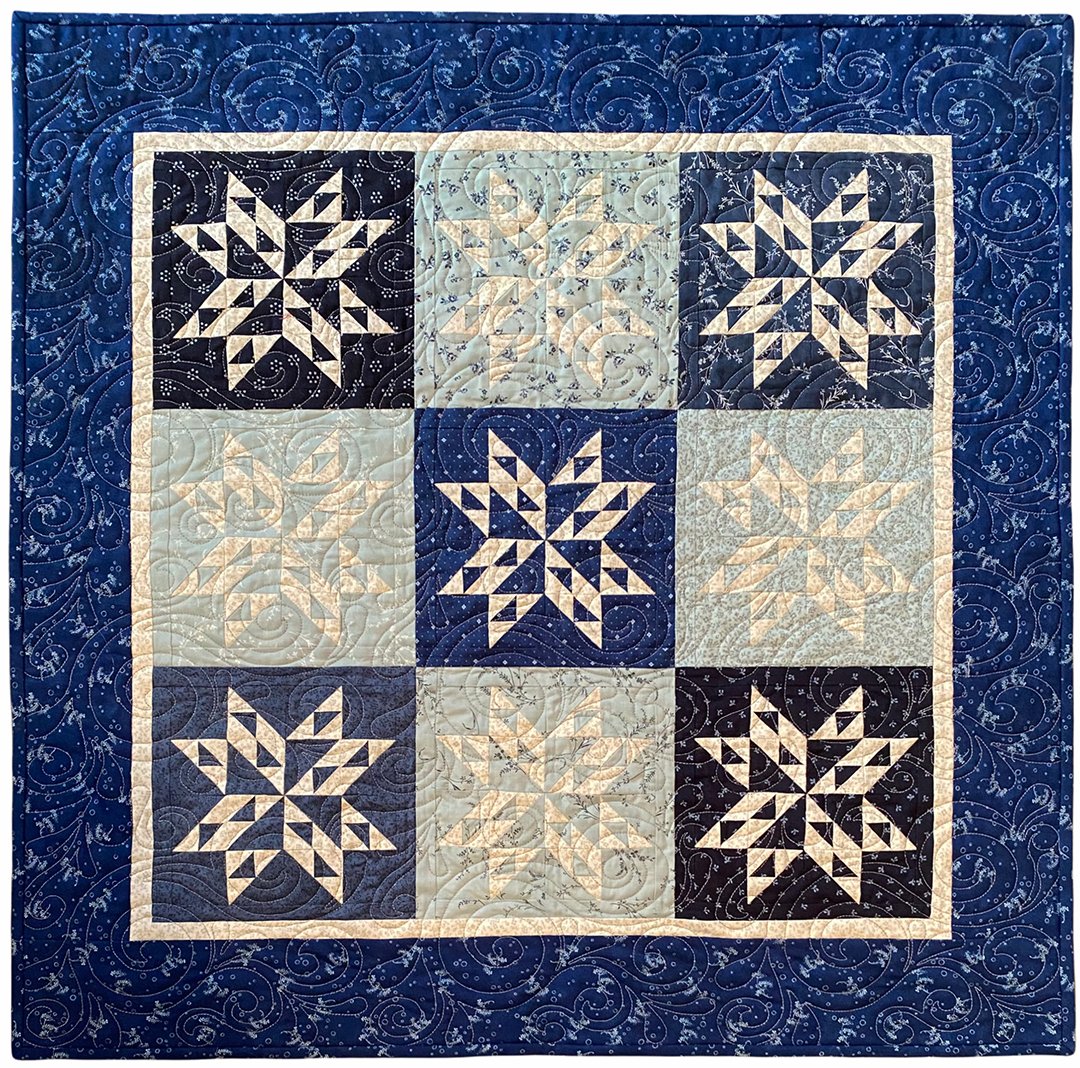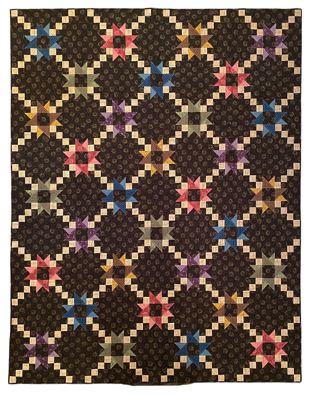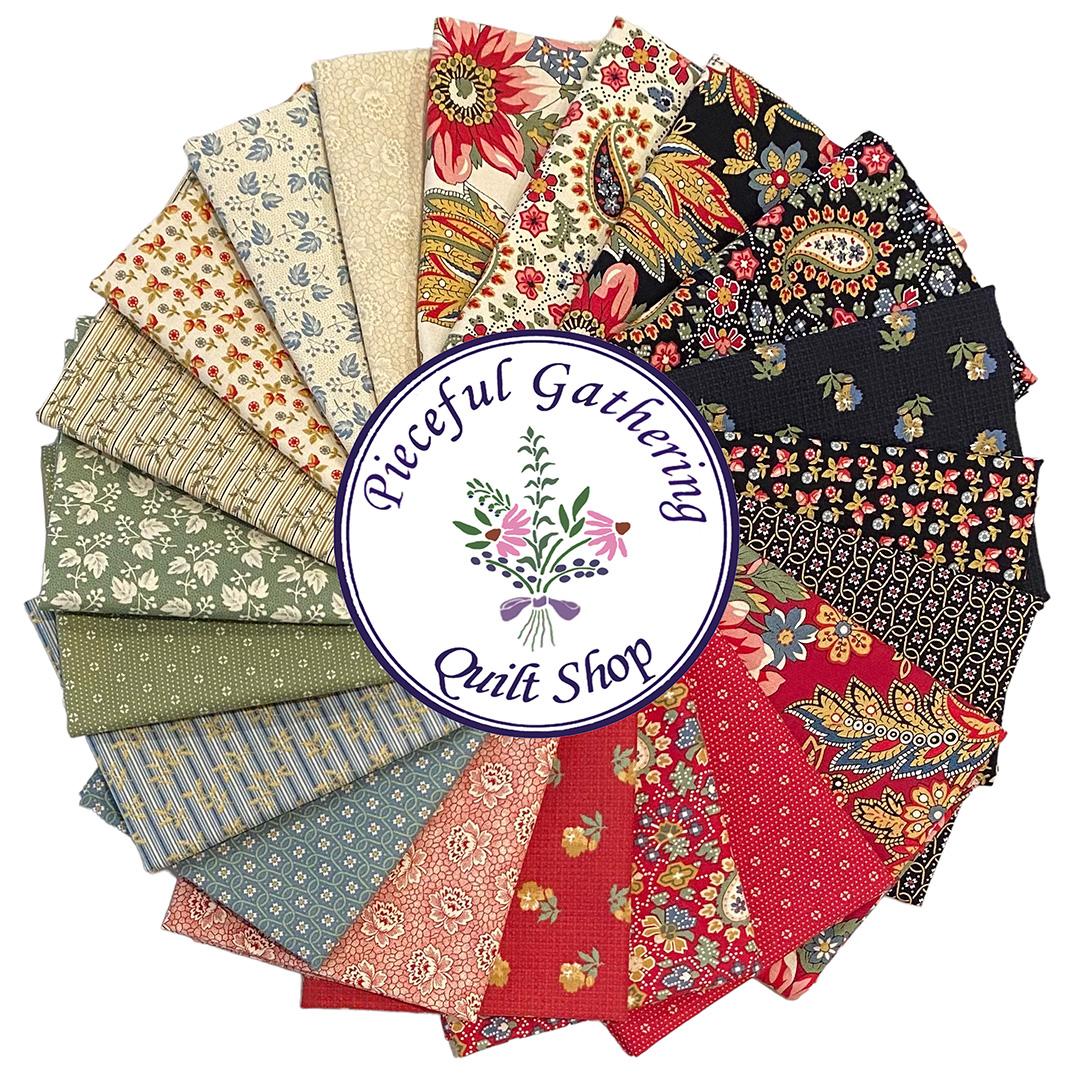 We also made a larger quilt from Kim's latest book, Simple Double Dipped Quilts, using some of Kim's new fabrics. This is Heritage Blossom and is a 76.5" x 76.5" quilt. I just love how cool this large block is. It's like a block, in a block, in a block! Cindy said this was a really fun sample to put together. It's a fairly large quilt already (77" x 77") that you could easily make queen size by adding a border or two. |
