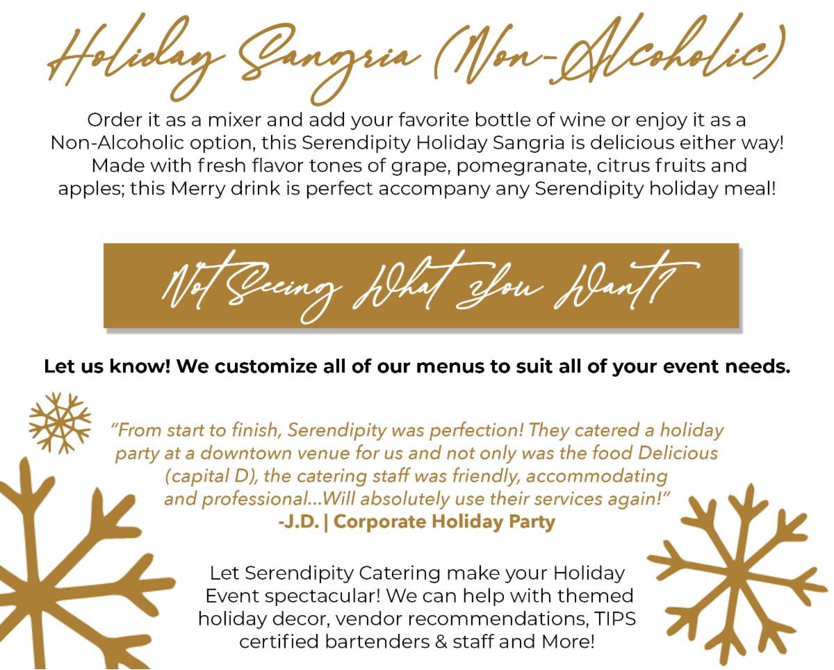 Be sure to secure your desired date by booking your Serendipity Catering holiday event today.