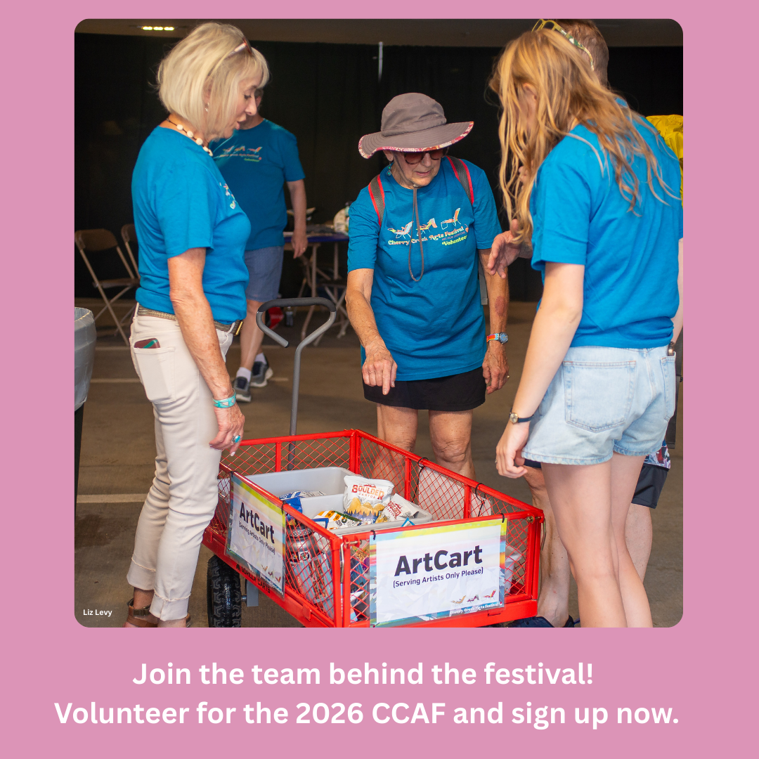 This year, five emerging artists will participate in the Cherry Creek Arts Festival, gaining hands-on experience and visibility in a premier arts environment. We’re looking forward to sharing more about their work and creative journeys in the coming weeks as we lead up to the 35th Anniversary of the Cherry Creek Arts Festival. Discover more about this year’s emerging artists and their unique creative practices.