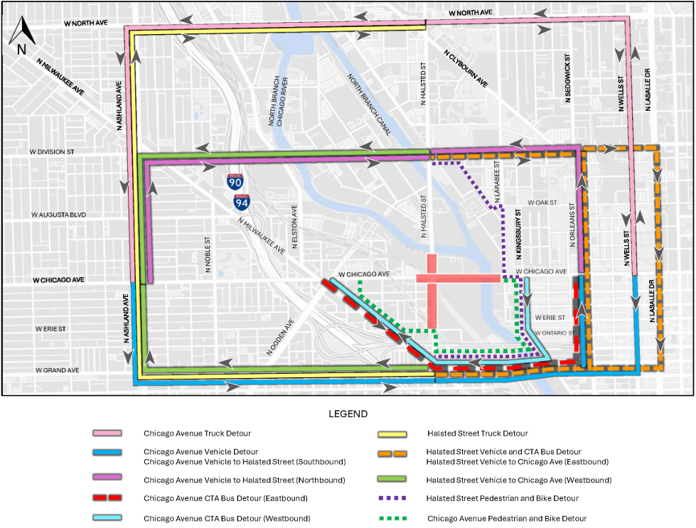 The Illinois Department of Transportation (IDOT) continues to perform work on the outbound lanes of the Ohio Street feeder ramp. Only two lanes will be closed at a time. IDOT is not required to adhere to the construction schedule outlined by the Chicago municipal code. The project is estimated to be in progress until late 2025.