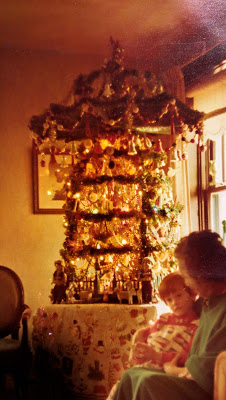 The rising heat from candles turned a paddle wheel at the top and the tree slowly revolved after she asked me to light the candles.