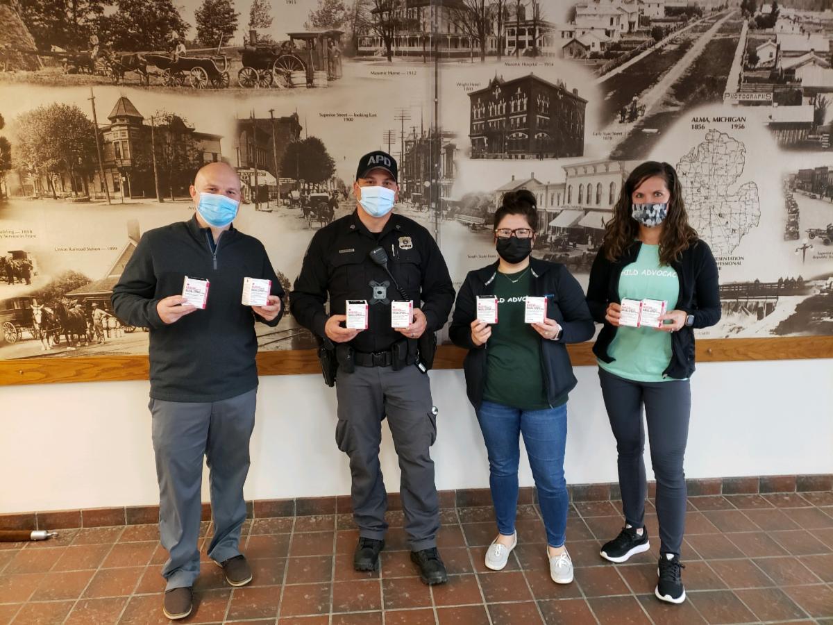 In May, GCSAC was able to distribute these additional Narcan doses to local police departments in Gratiot County. St. Louis Police Department was provided with 16 doses, Alma Police Department was provided with 20 doses, and Breckenridge Police Department was provided with 2 doses.