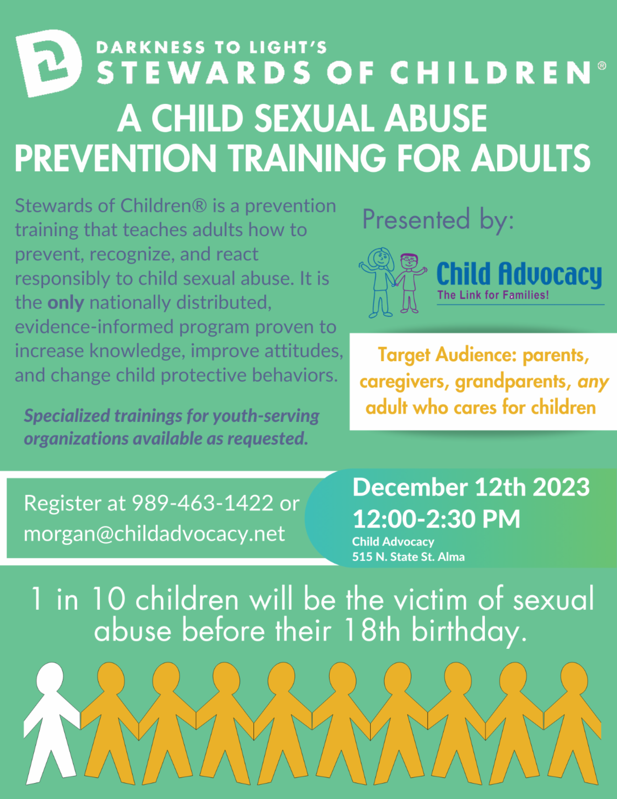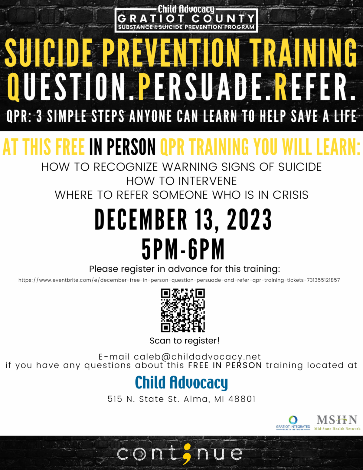 If you would like to learn more, please contact us at (989) 463-1422 or visit gratiotdrugfree.org. And if you wish to get involved, please join us on the second Monday of each month at 1:00pm at Child Advocacy to truly make a difference in our community!