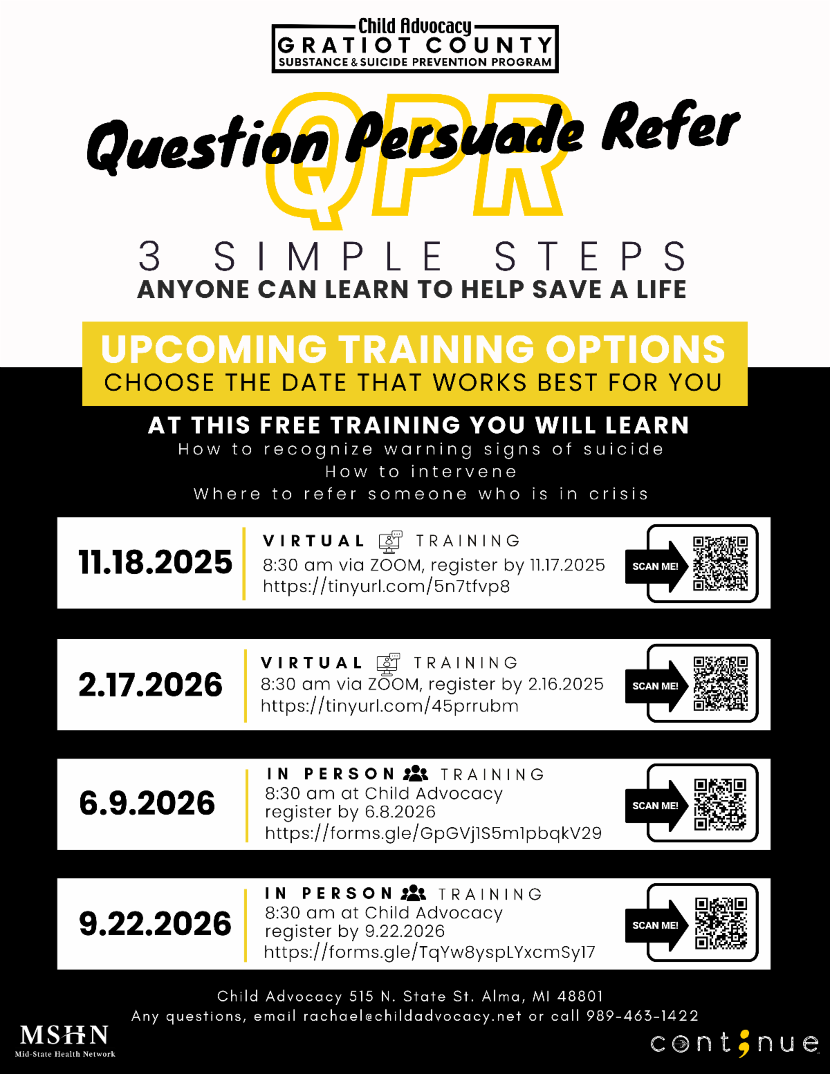 We are thrilled to continue our second year of the Safer, Smarter Kids personal safety curriculum in Gratiot County! Last year, this program helped students gain the knowledge, confidence, and skills they need to stay safe as their world grows—and we are excited to be back in the schools for another year of Safer, Smarter Kids!