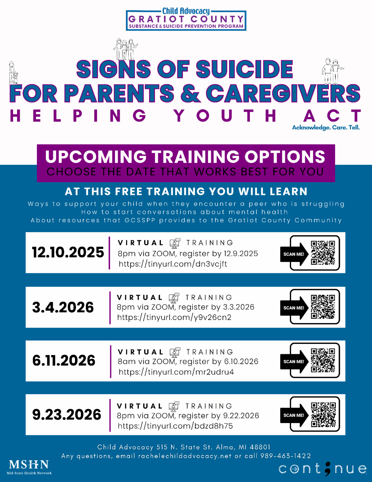 This year, the program will once again be taught to all 1st and 3rd graders in Gratiot County. Following each lesson, caregivers will receive Caregiver Connection Notes, full of activities, conversation starters, and tips to reinforce safety lessons at home. These notes help extend the learning beyond the classroom and give families practical ways to talk about safety in everyday life.