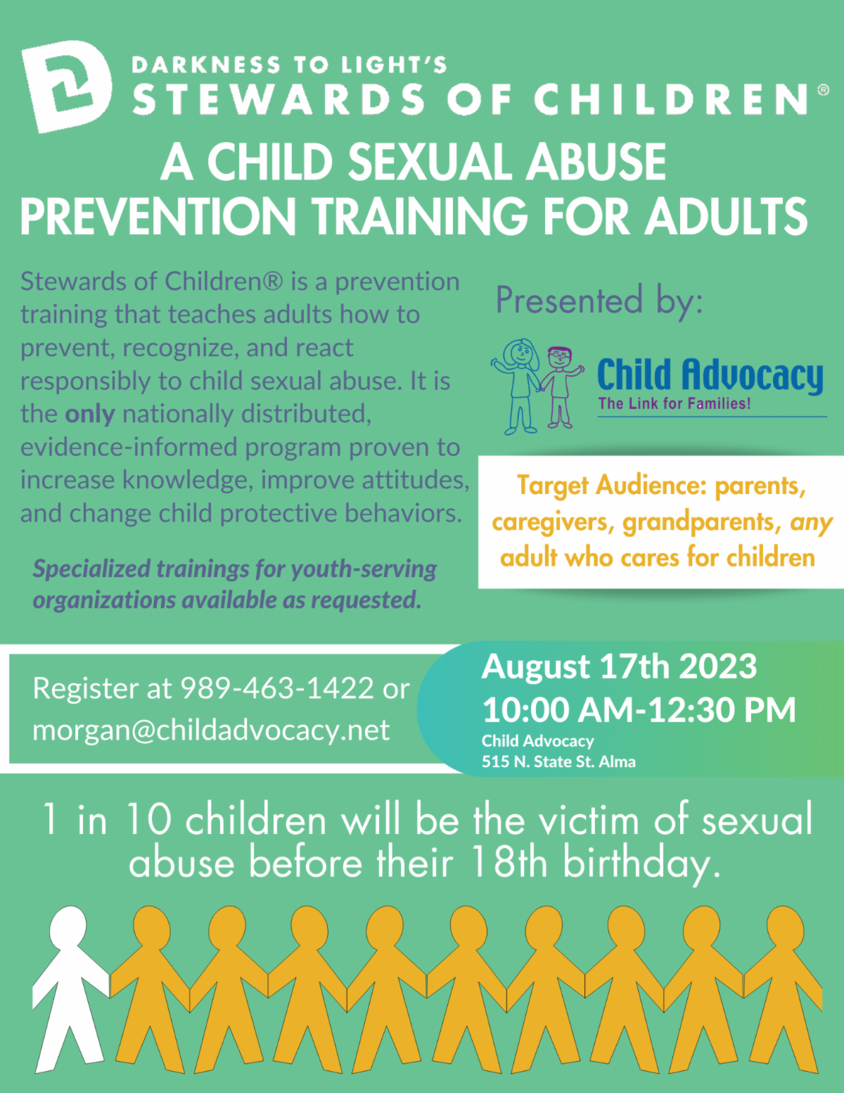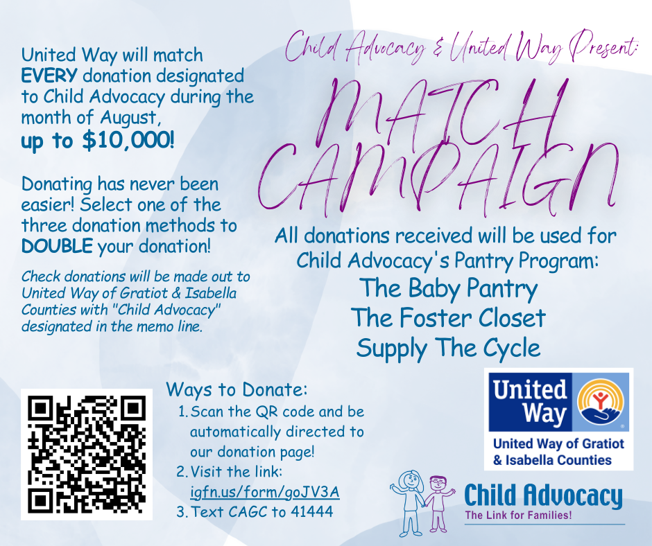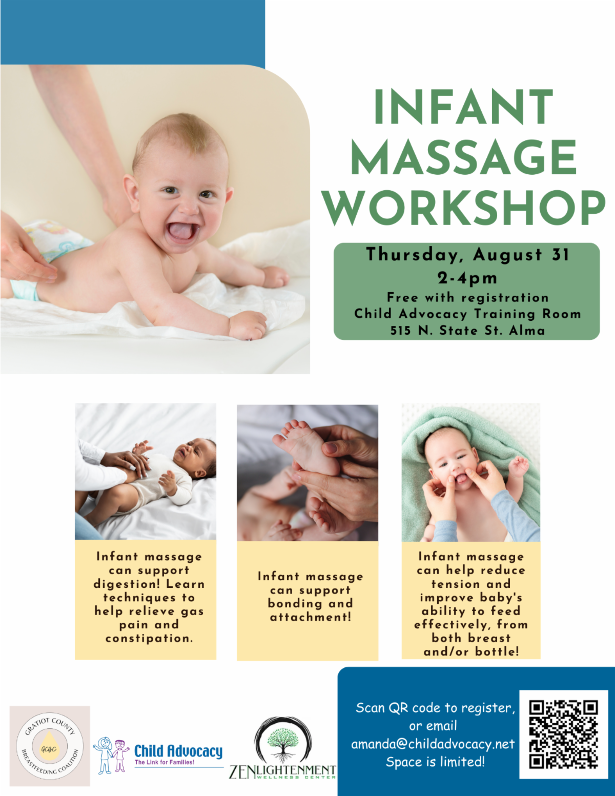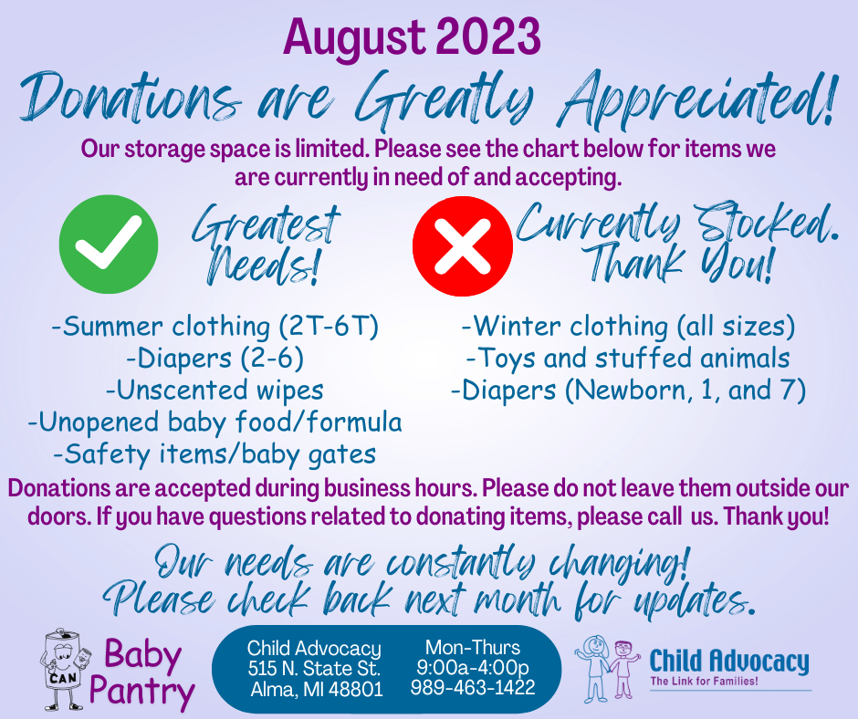 The Gratiot County Breastfeeding Coalition (GCBC) is excited to be celebrating our first year this August! The GCBC was established in September of 2022, as a program of Child Advocacy, to collaborate with local organizations and families in creating a more breastfeeding-supportive culture in our community. The coalition meets once a month to share updates on lactation resources and trainings, identify barriers, discuss a relevant educational topic, and plan community events. Meetings are open to anyone who wishes to learn more about how to improve breastfeeding support in our community, and are regularly attended by staff from Child Advocacy, Mid-Michigan District Health Department, MyMichigan Health, Gratiot Integrated Health Network, local doulas, community lactation supporters, and parents. Our educational topics this past year have included presentations about human milk in the NICU, the Infant Mental Health services provided by GIHN, the impact of tethered oral tissues on breastfeeding, WIC, Infant Safe Sleep, the role of doulas in supporting families, and the services provided by Eight Cap & 0-5 Head Start. Monthly meetings are held on the fourth Wednesday of every month at 4:30 p.m., in the Child Advocacy Training Room as well as Zoom.