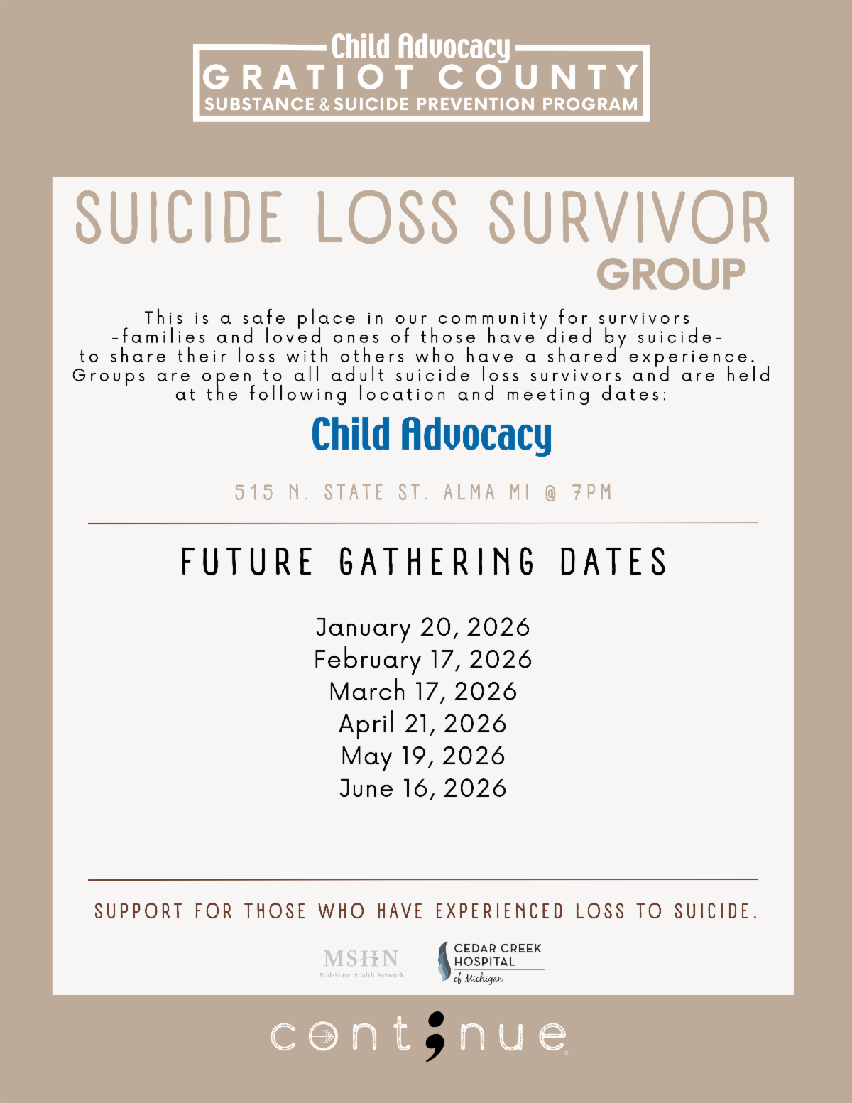 • The Gratiot County Substance and Suicide Prevention Program Coalition