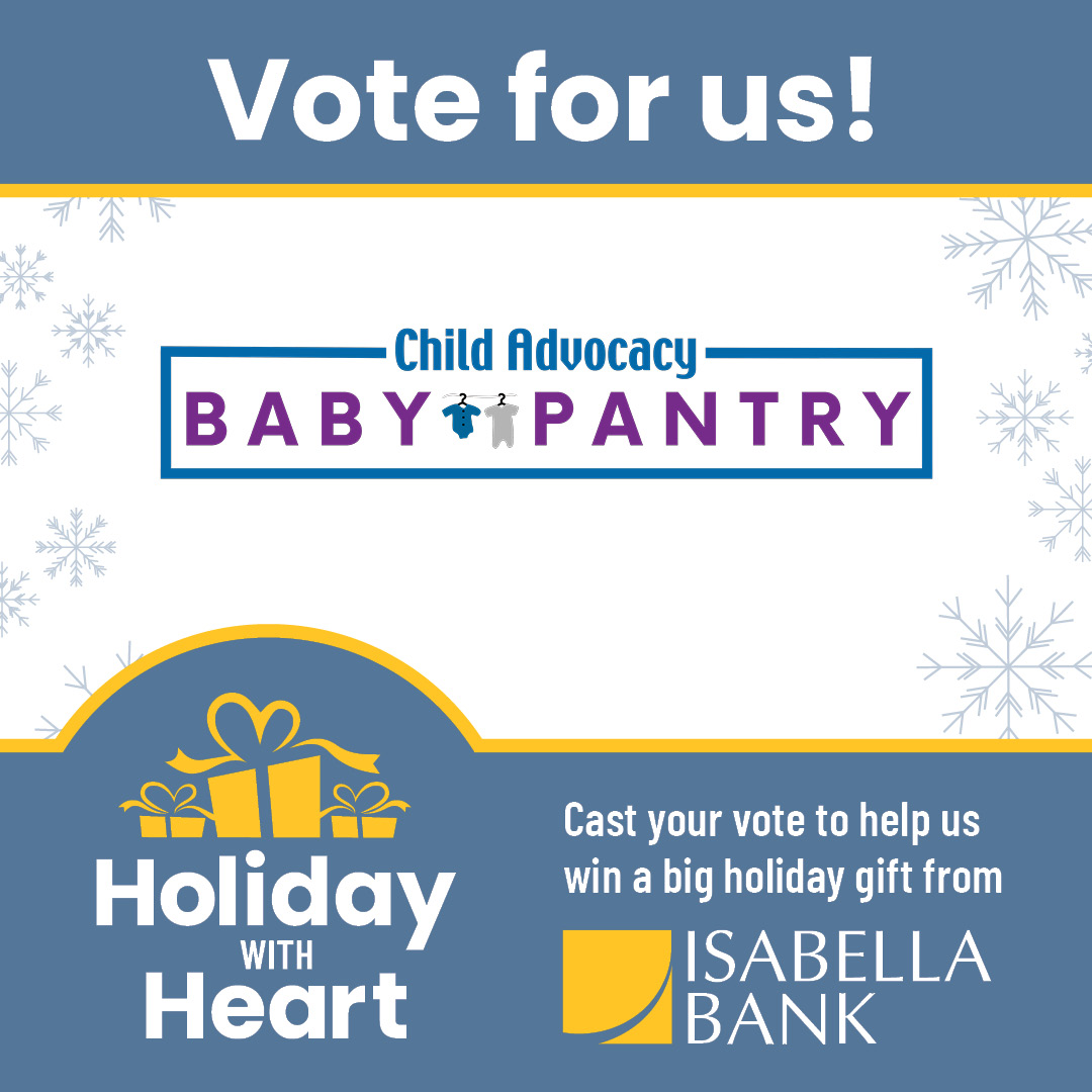 We’re proud to be a finalist in Isabella Bank’s Holiday with Heart initiative, and with your support, we could receive up to $10,000 to put towards purchasing items for our Baby Pantry.