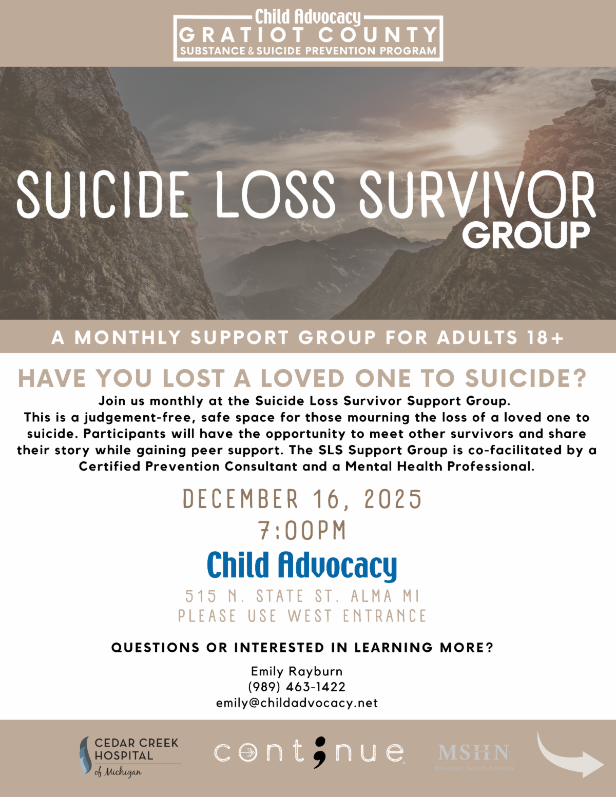 Questions? Call (989) 463-1422 or email Rachel at rachel@childadovcacy.net.