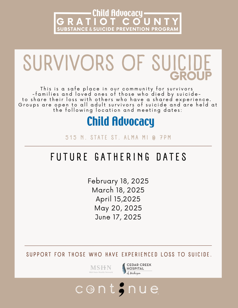 For more information about how to have conversations with youth about alcohol and drug use, check out the Gratiot County Substance and Suicide Prevention Program’s website: www.gratiotdrugfree.org