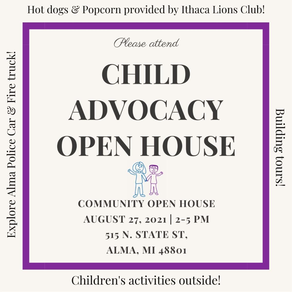 We welcome you to visit our new building located at 515 N. State St. - Alma to see our new space, enjoy hotdogs & popcorn provided by Ithaca Lions Club, visit with Alma Police Department & Alma Fire Department as you explore their emergency vehicles, and visit our children's activities located outside, weather permitting. We hope you can attend!