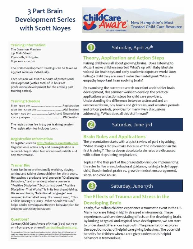 - Trauma Informed Early Childhood Services: Saturday, 5/13/17, 9:00 am - 1:00 pm, Hampstead Academy, 314 East Road, Hampstead, 03841