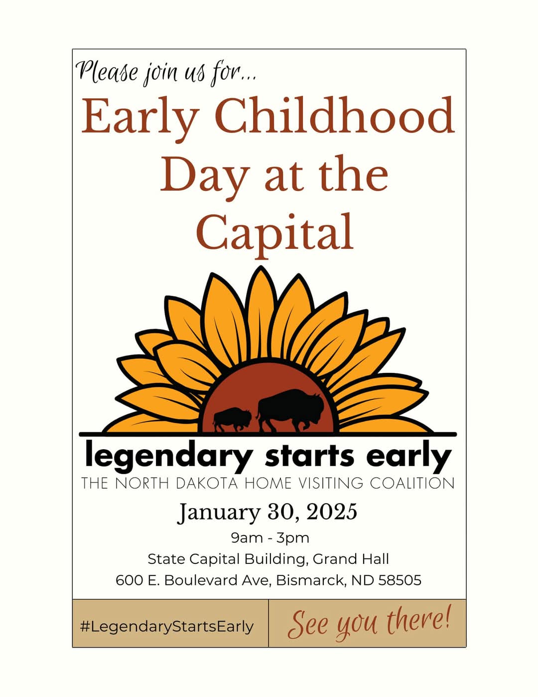 Early Childhood Day at the Capitol is an opportunity for early childhood organizations to come together to connect and greet/meet legislators to share the importance of early childhood services in North Dakota.