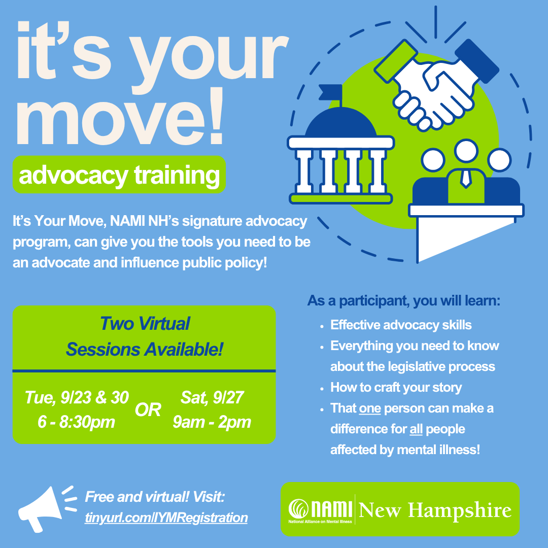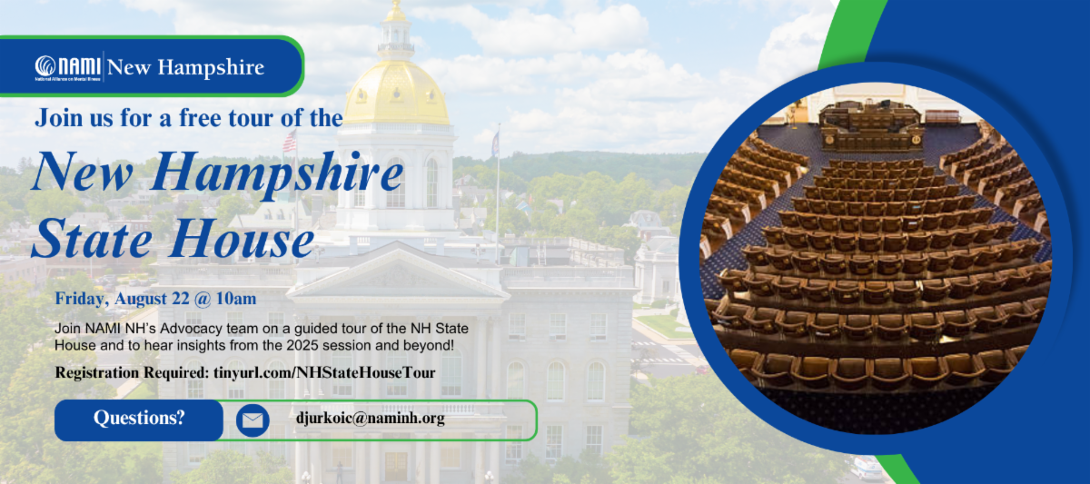 To connect with free mental health resources and support in the Granite State, contact info@NAMINH.org or 1-800-242-6264 (press 4) to leave a confidential message.
