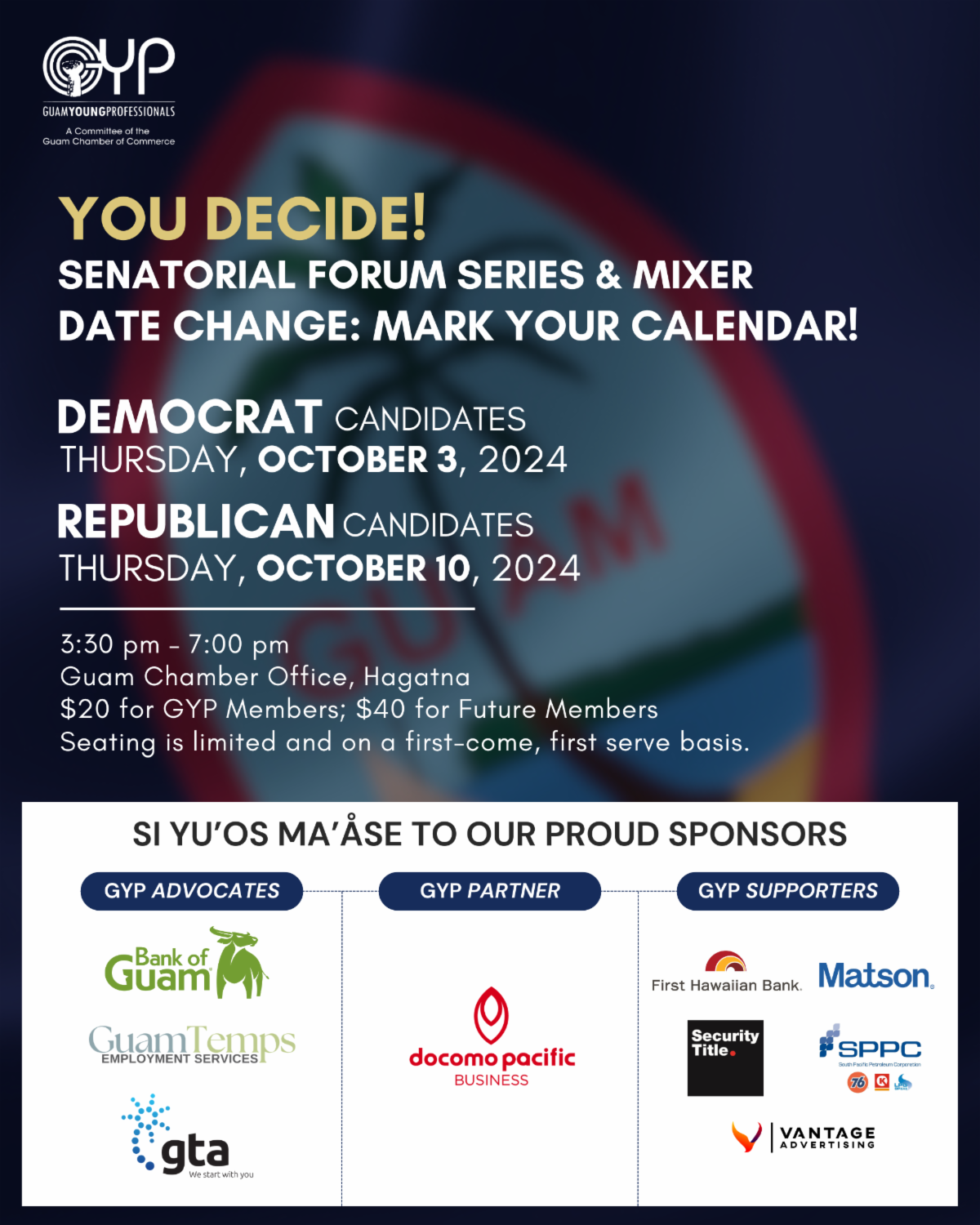 YOU DECIDE: GYP Legislative Forum Series & Mixer: Engage with key legislative candidates as we discuss important issues impacting our community. This forum is an excellent opportunity to voice your concerns and contribute to meaningful discussions on local policy. Please note that the Forum & Mixer has been rescheduled for Thursday, October 3rd and 10th.