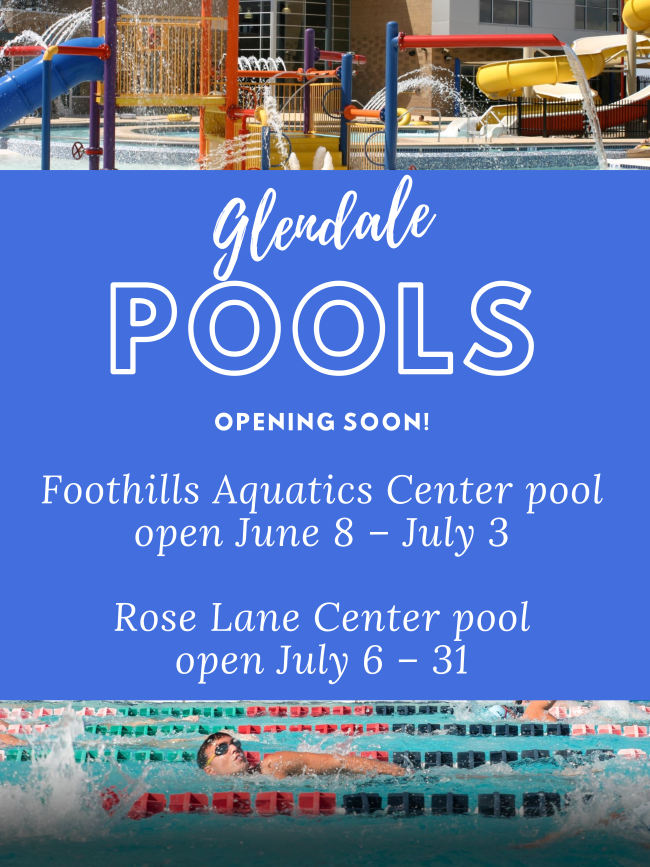 WHERE: Glendale’s two aquatics centers are located at 5600 W. Union Hills Dr. (Foothills) and 5003 W. Marlette Ave. (Rose Lane)
