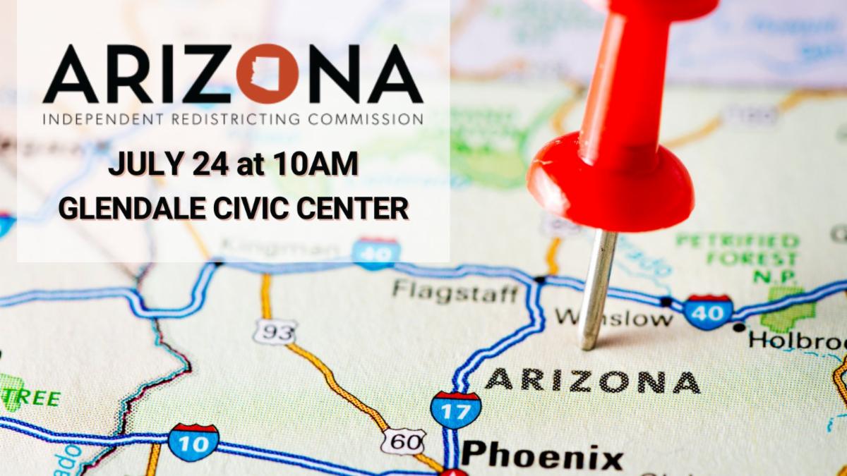 The Arizona Independent Redistricting Commission (IRC) invites Glendale residents to participate in its first round of statewide public hearings this Saturday, July 24 at the Glendale Civic Center starting at 10 a.m.