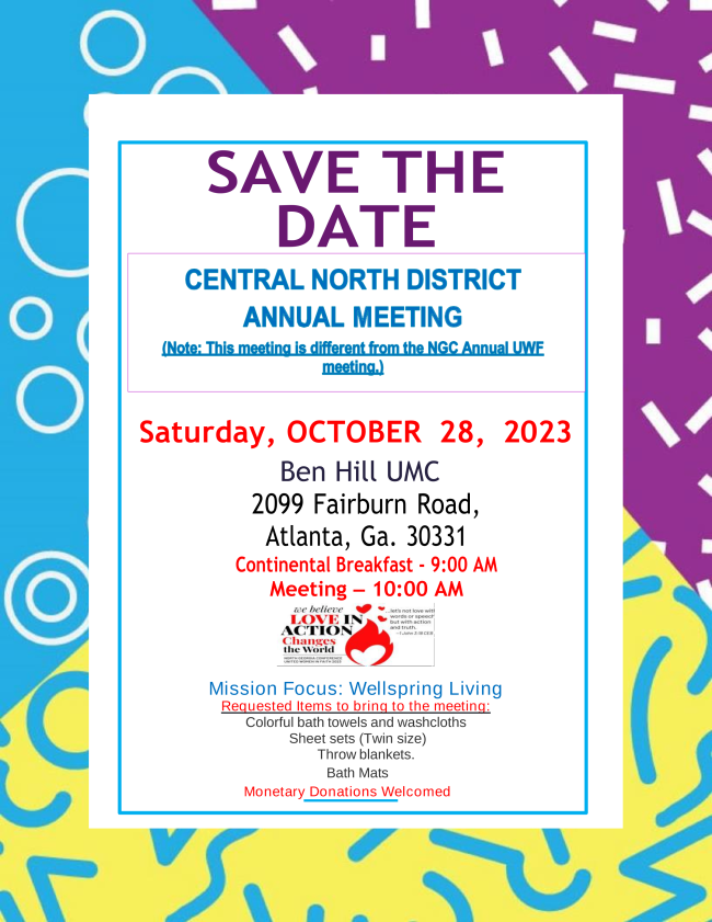 CENTRAL UMC WEEKLY CALENDAR