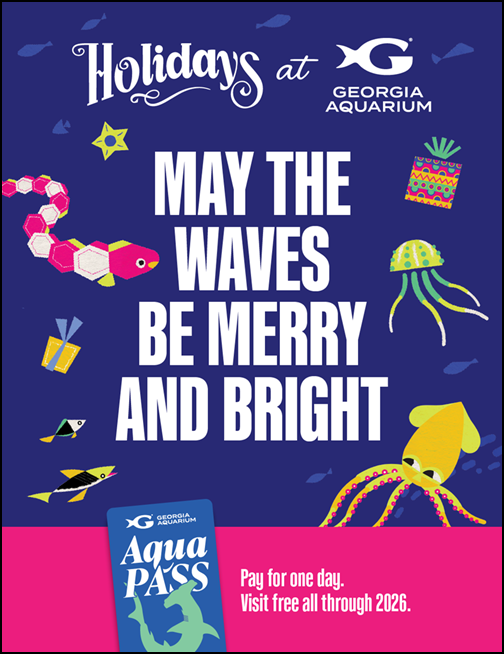 225 Baker St. NW, Atlanta, GA, 30313 The magic of the winter season returns. Take in the sights and sounds of Holidays at Georgia Aquarium in our completely transformed atrium with festive music, winter-inspired projections, and our 40-foot live tree. We are proud to bring back some of your holiday favorites including photos with Santa, daily lighting of our tree, and holiday-themed dolphin presentations. We cannot wait to sea you! 404-581-4000