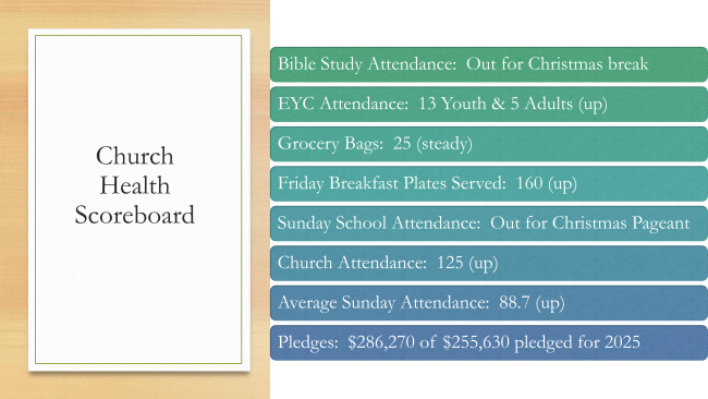If you added someone to the "Prayers of the People" during our worship service please follow up with a phone call to the office and we will add them to next Sunday's prayer list. Also, let us know how the person you requested prayer for is doing.