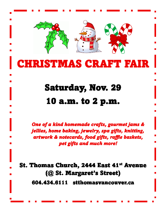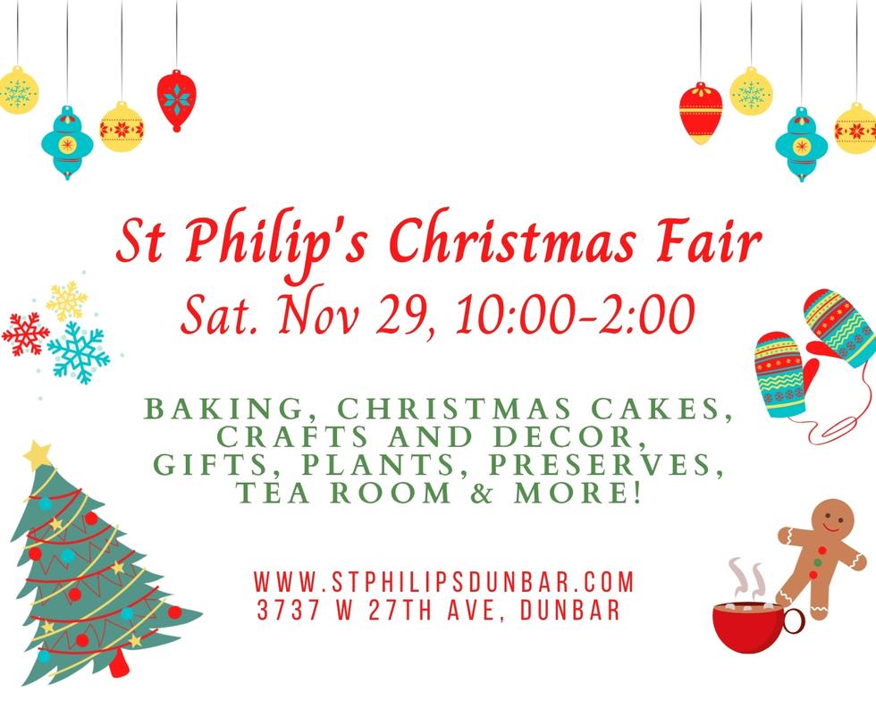 November 29 | 10am to 2pm St. Philip's | 3737 W. 27th Ave, Vancouver
