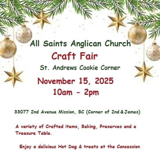 November 22 | 10am to 2pm All Saints, Ladner | 4755 Arthur Dr., Ladner
